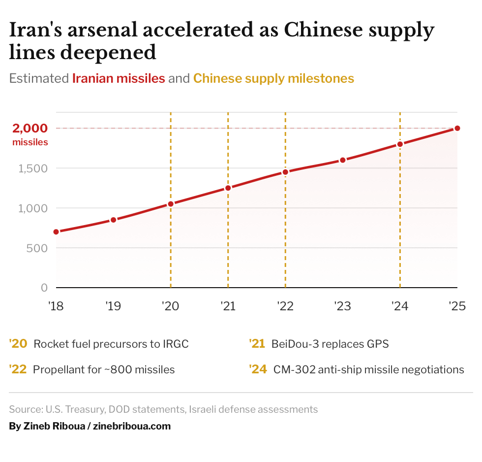 The most important chart, given the ongoing war against Iran, is the Chinese missile manufacturing program, thanks to which Iran is currently capable of responding to any attack against its country.